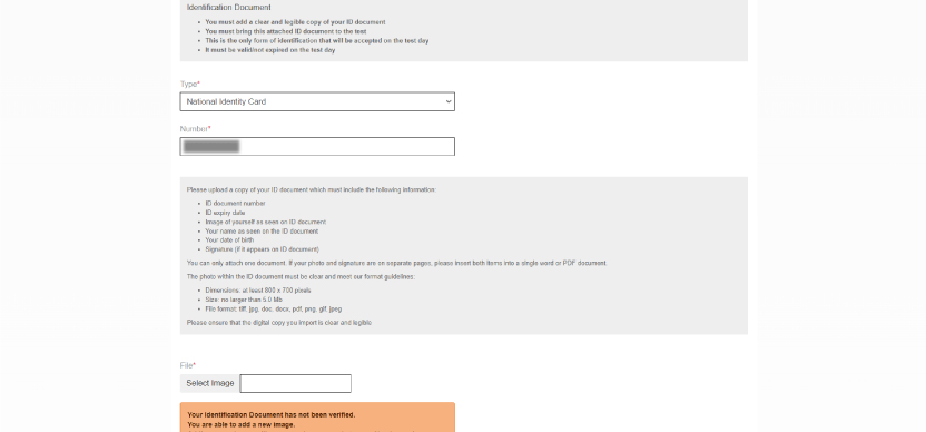 پس از پاسخ به پریشهای مربوط به Application Details در انتهای صفحه، شماره کارت ملی خود را وارد کرده و تصویر مناسبی از خود بارگذاری میکنید. در نهایت روی Continue کلیک کنید.